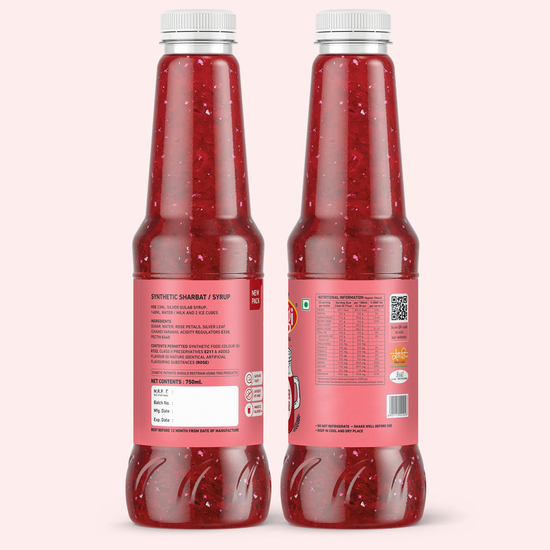 Elegant and aromatic, the Silver Gulab stands unmatched as a symbol of romance and purity. Across India, Silver Gulab syrup has long been offered as a welcome drink during festivities and celebrations. SHREE YOGI SARBATWALA Silver Gulab Syrup adds delightful aroma and sweetness to sharbats, mocktails, sodas, lemonades, and iced teas, turning ordinary beverages into special experiences. With every glass, SHREE YOGI SARBATWALA makes moments more refreshing, memorable, and truly enchanting.